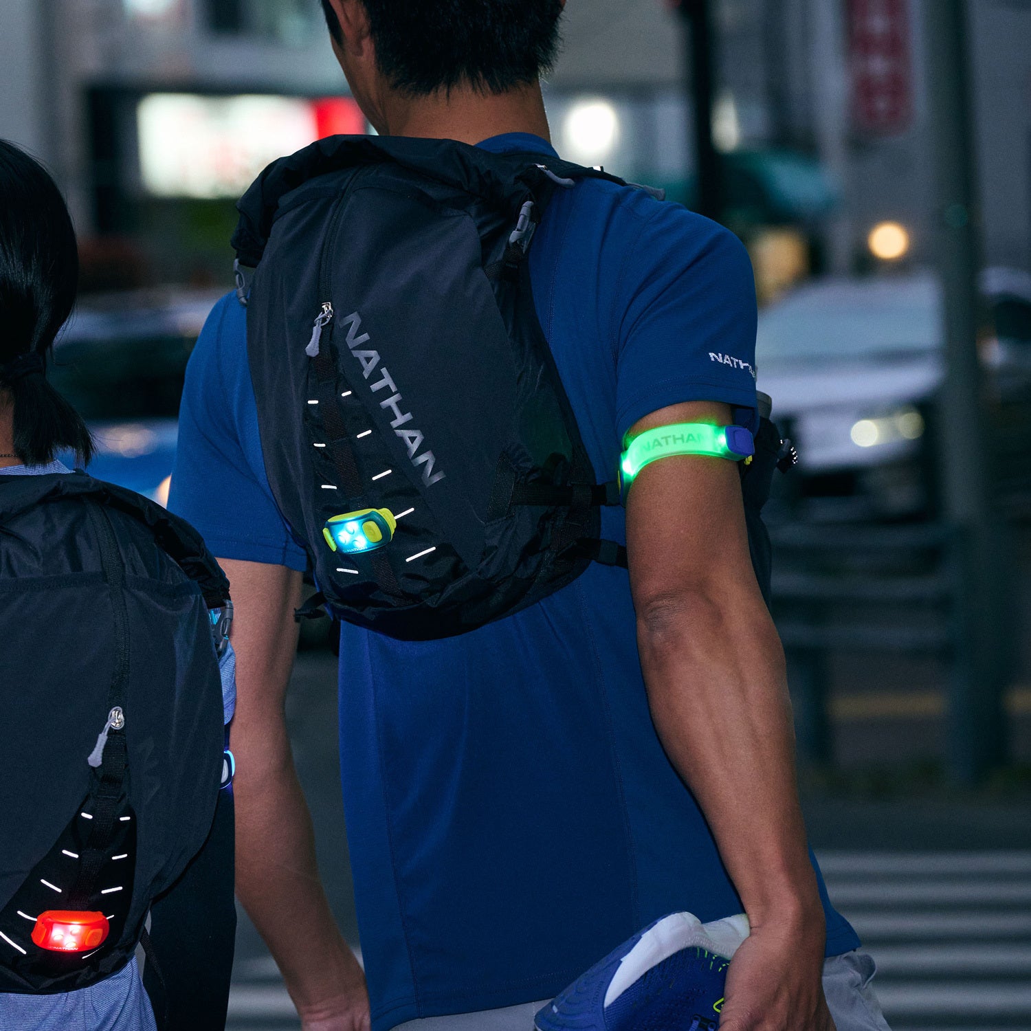 装着することで、夜間や明け方など暗い中での視認性をアップさせ、安全なランニングをサポートするナイトラン用のアイテム。安全なランニングをサポートするアームバンドタイプのUSB充電式LEDライト。