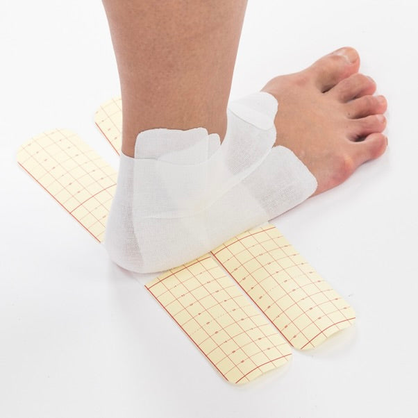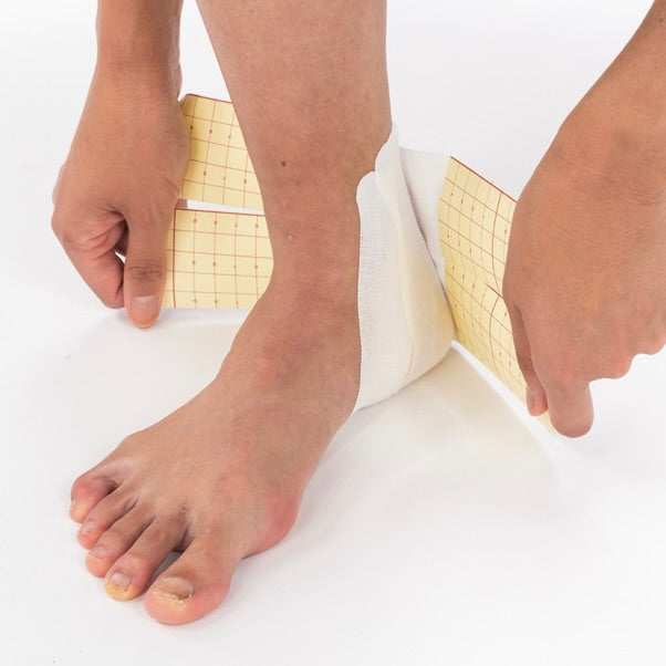 効果的に足首サポートを可能にする新発想のX型形状が、プロが巻いたようなしっかりしたテーピングを実現。肌に直接貼るため、長時間持続するサポート力とフィット感。