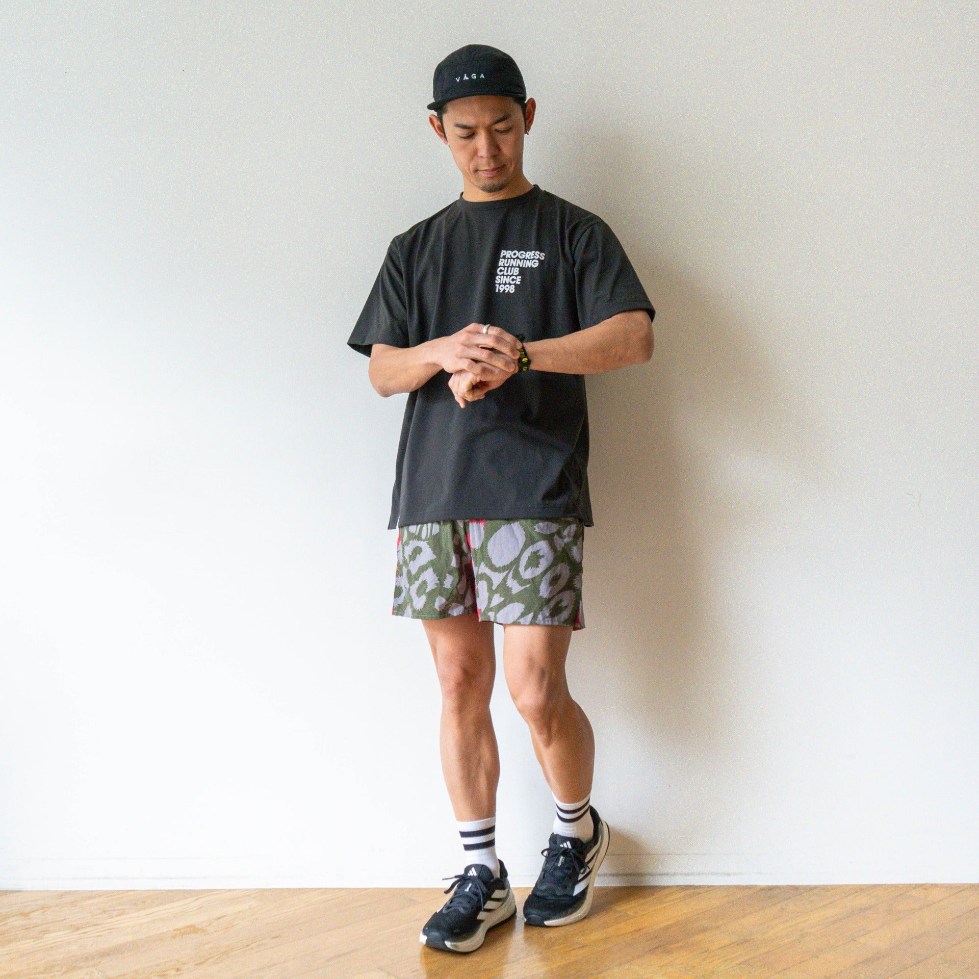 「PROGRESS RUNNING CLUB」のカルチャーが詰まったレトロなデザインで、ランのみならず街着にも着たくなる仕上がり。ランニングのあるライフスタイルで活躍する一着です。