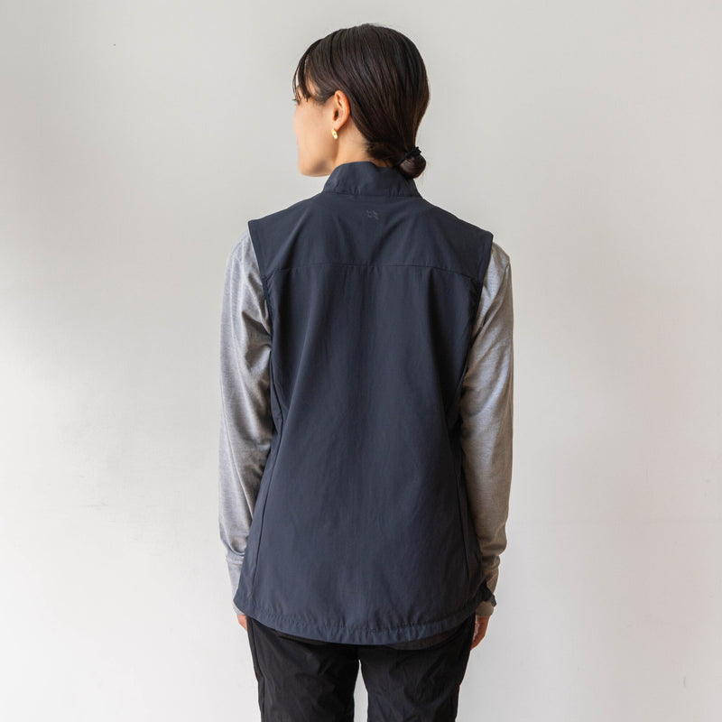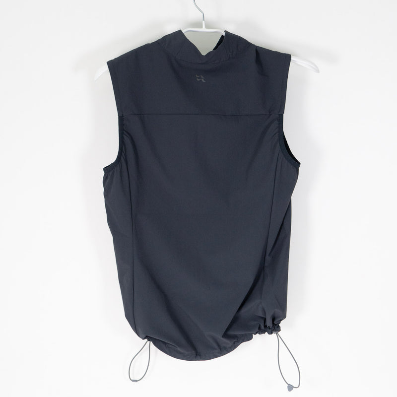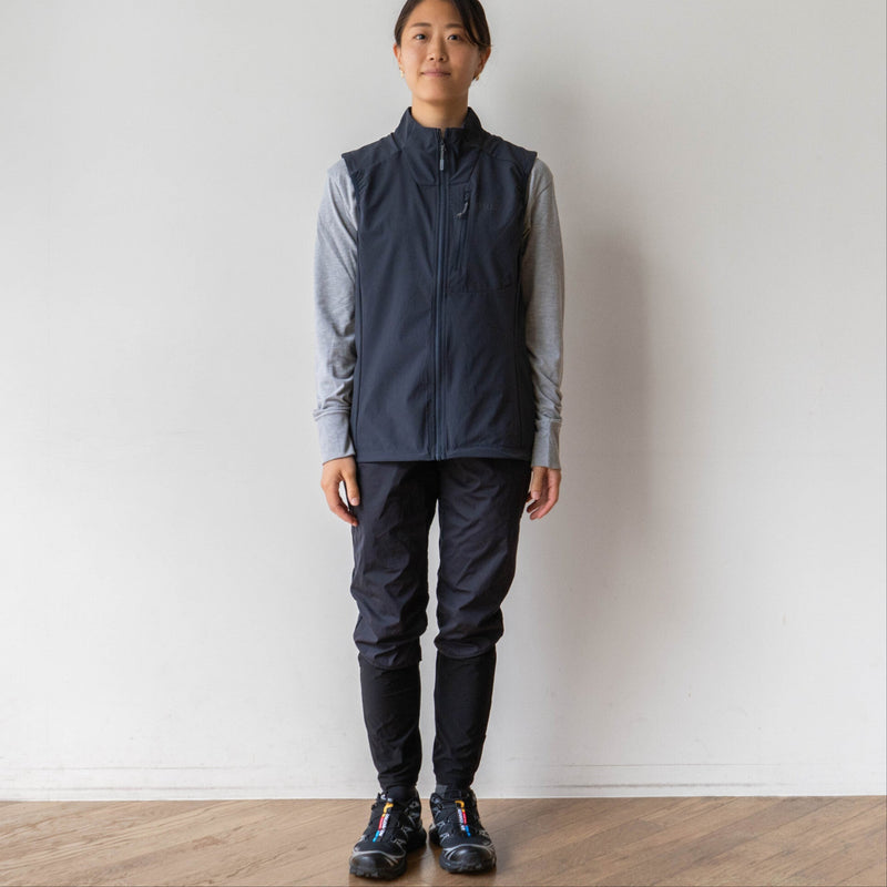 リサイクル素材を使用したこのベストは、防風性に優れながらも、内側の通気性も両立し快適な着心地が続きます。