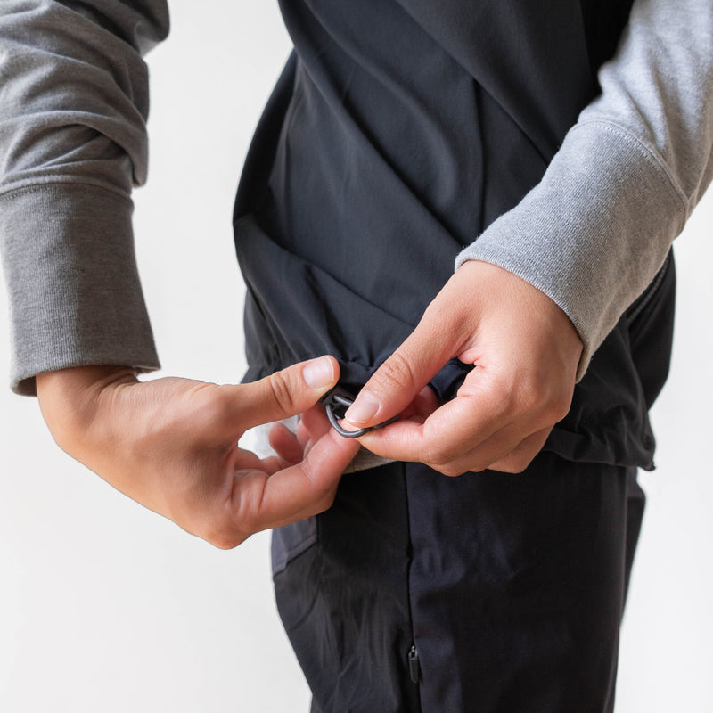 - 裾の両サイドにアジャスターを備え、片手でサッとフィット感を調整したり、風の侵入を防ぐことができます。