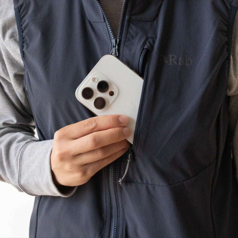 スマートフォンを収納可能な、メッシュ裏地付きのチェストポケットを搭載(YKK®製ジッパー)