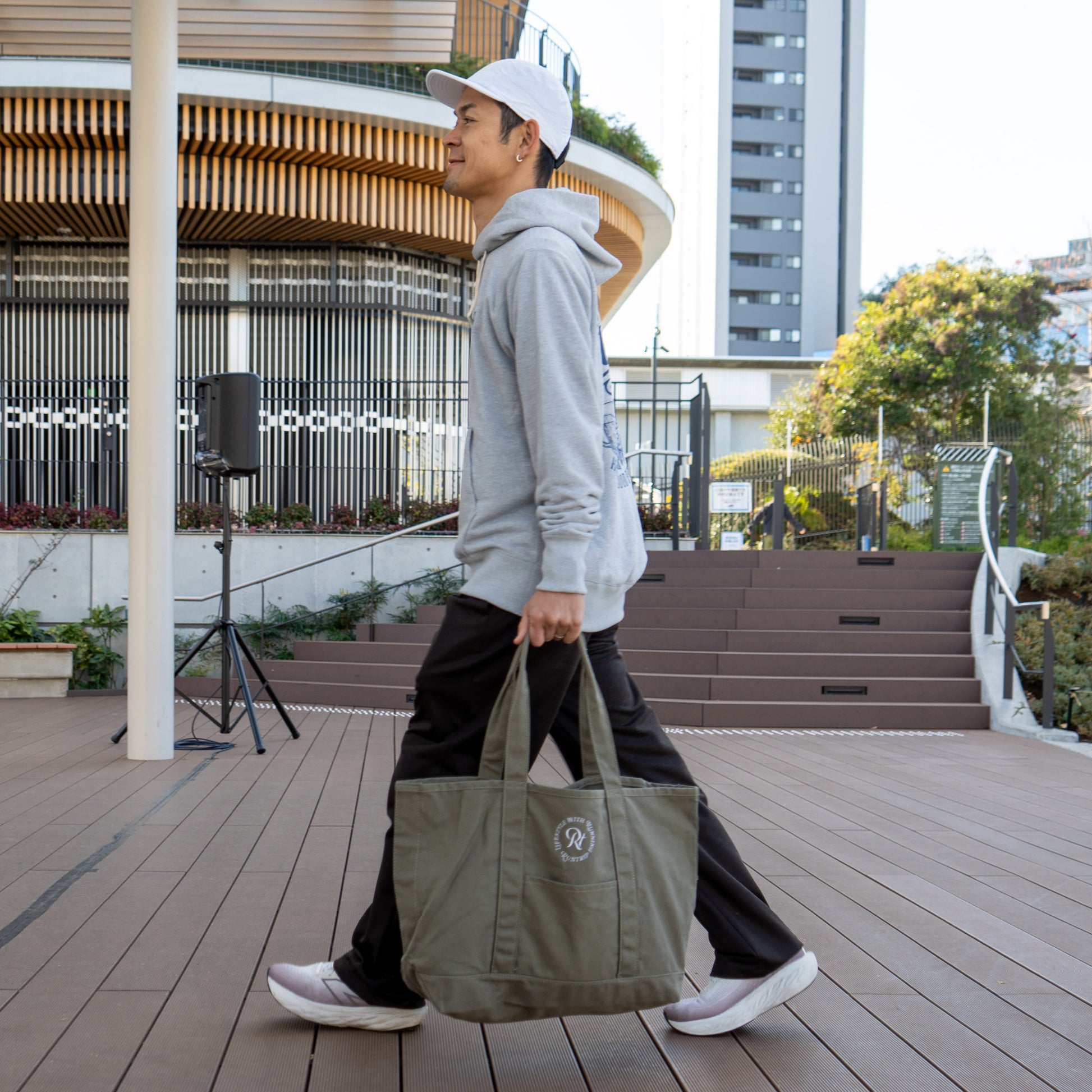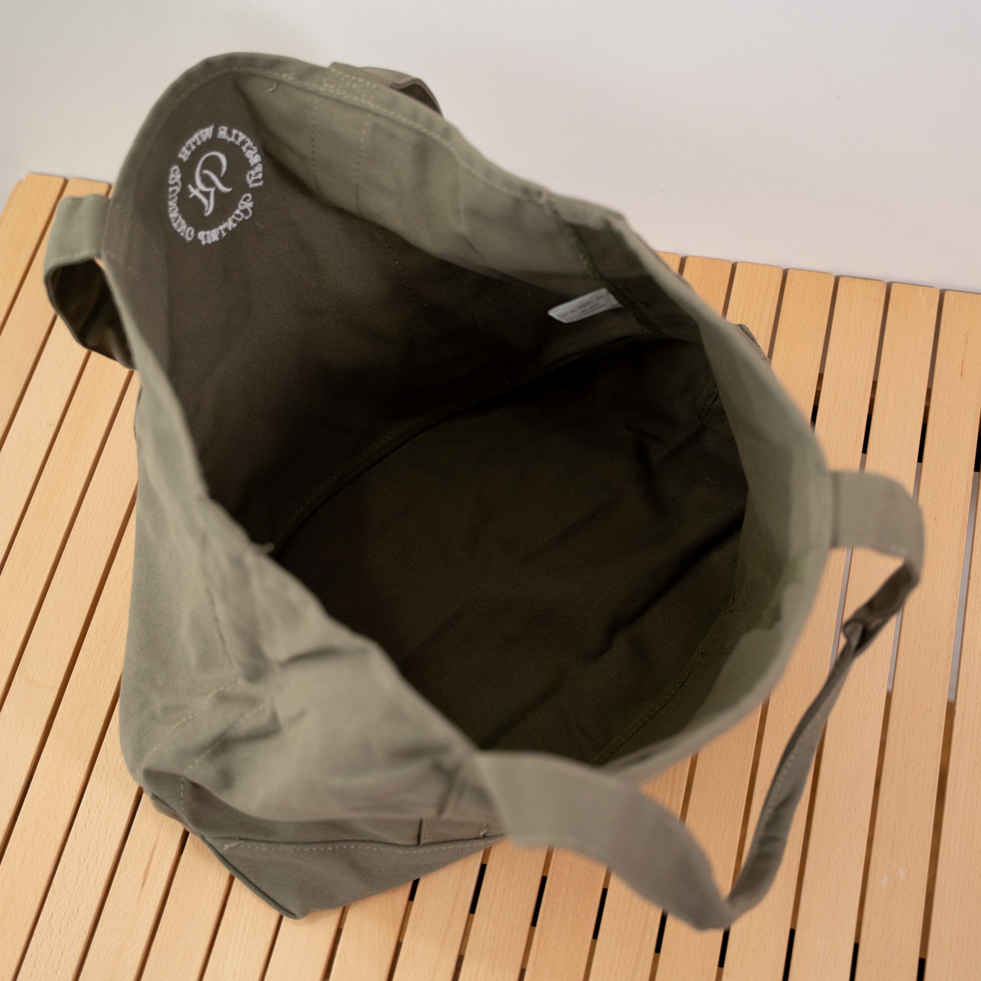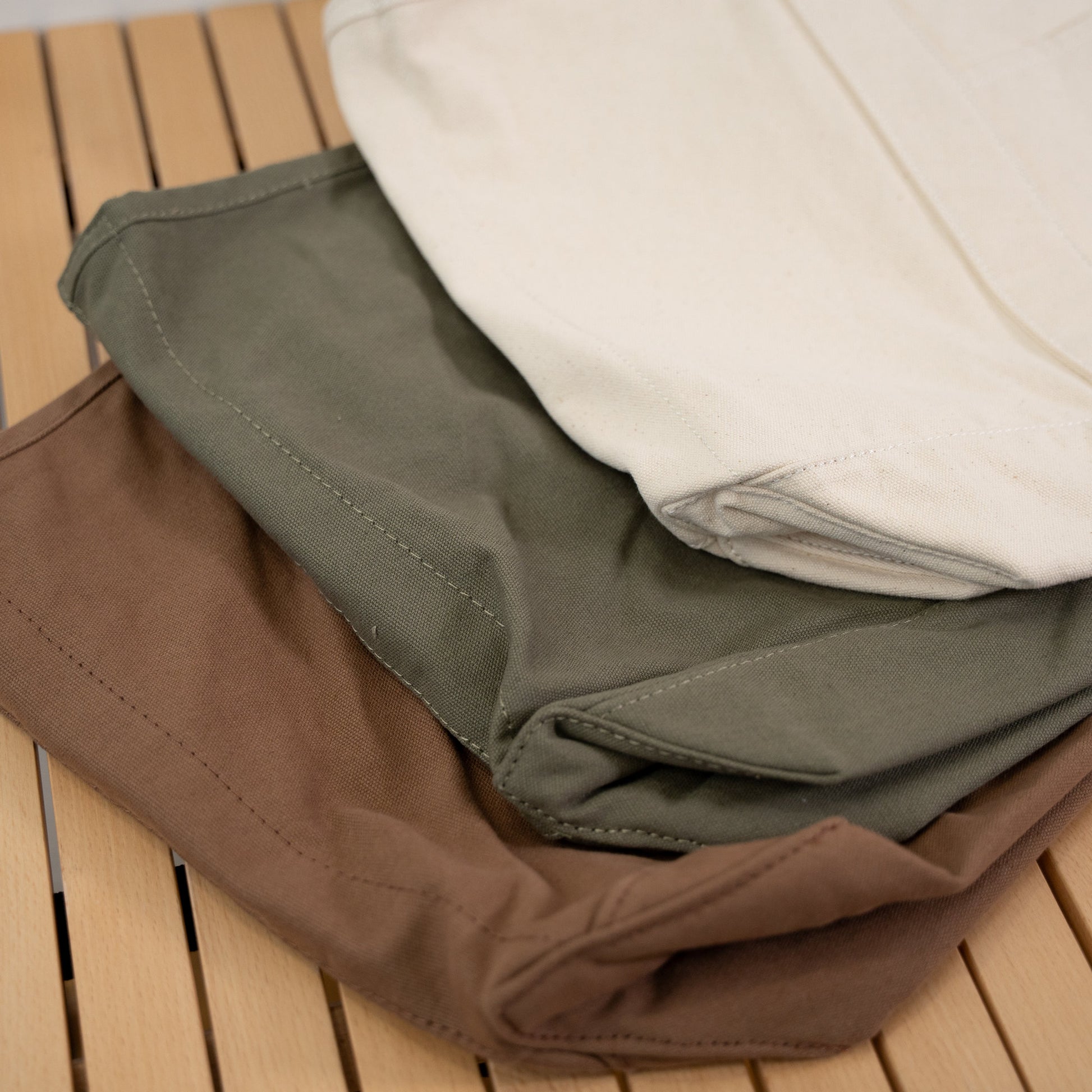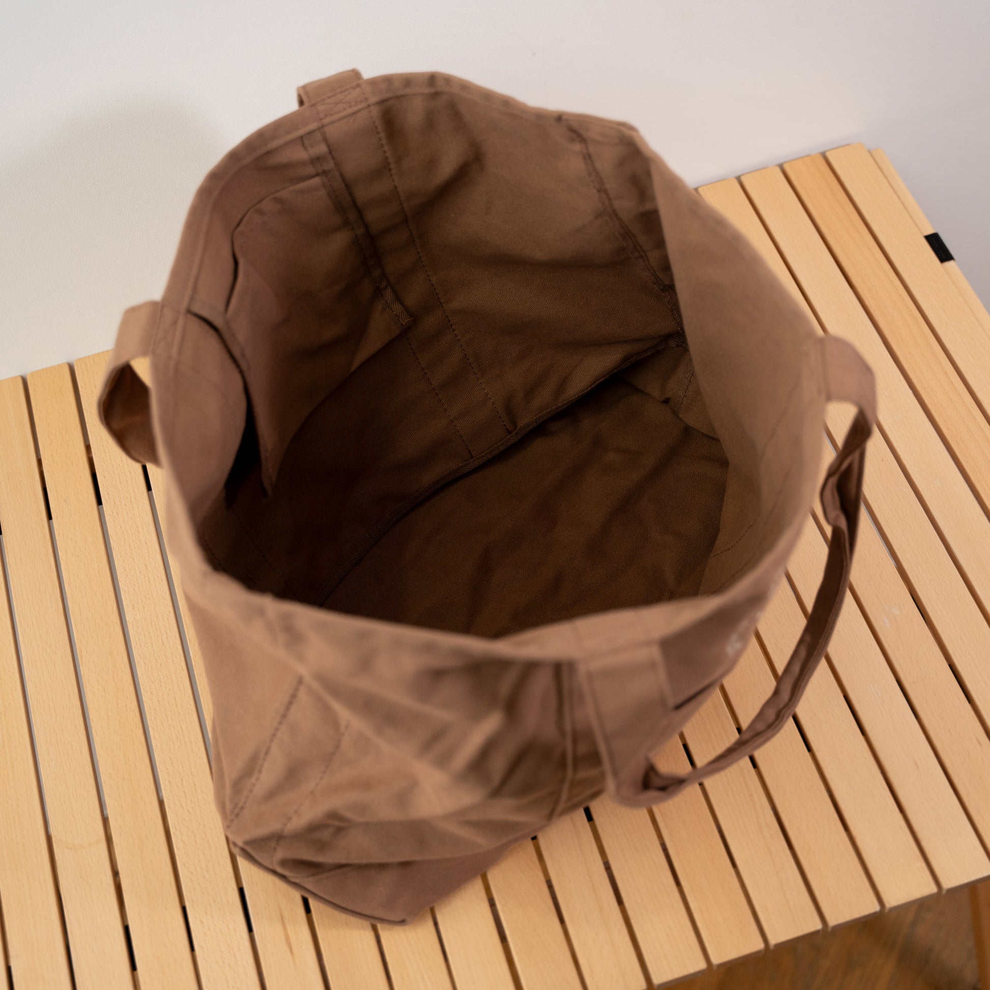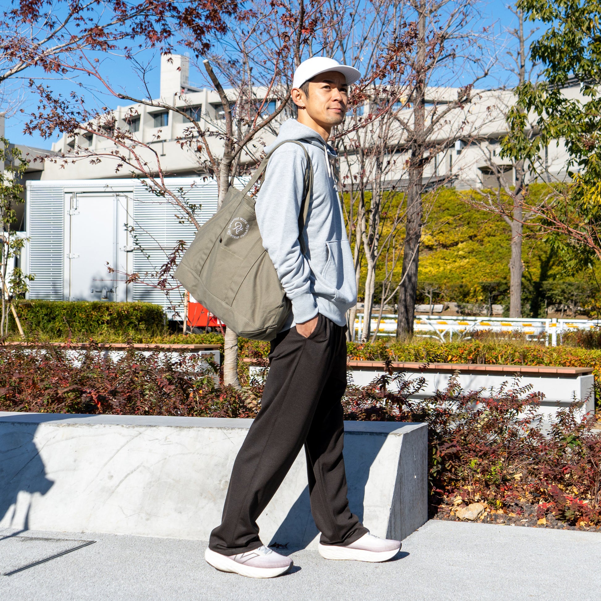 「帆布(はんぷ)」と呼ばれる厚手のコットン生地で織られた、Runtripオリジナル大容量トートバッグ。