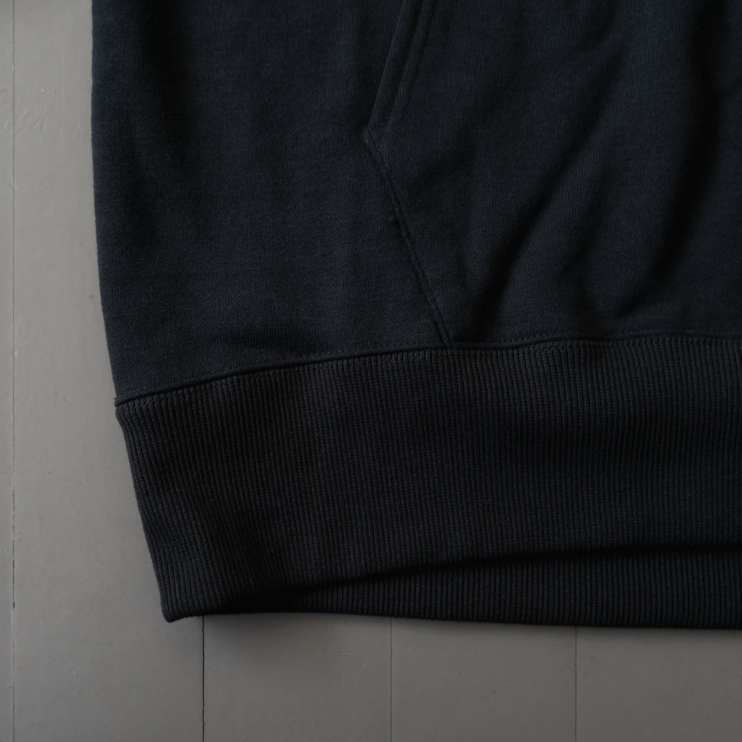 夜に洗って翌朝にはすぐに着れる、しっとりと柔らかく着心地の良いまるでコットンのようなポリエステルの裏毛は、走ることがライフスタイルの中心にある我々にとってこれ以上ないフーディです。