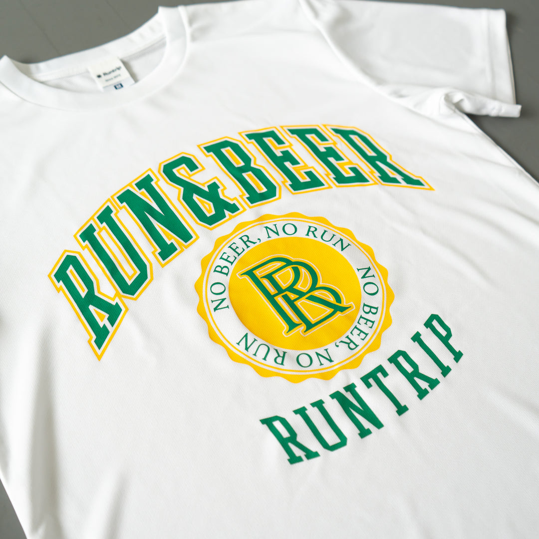 Run & Beer College Design DRY Tee (White / Green & Yellow)