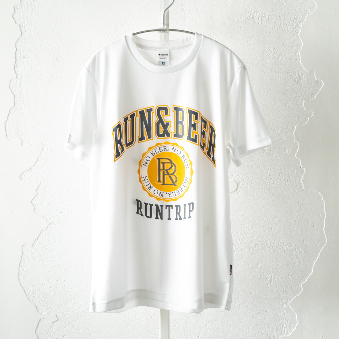 Run & Beer College Design DRY Tee (White / Gray & Yellow)