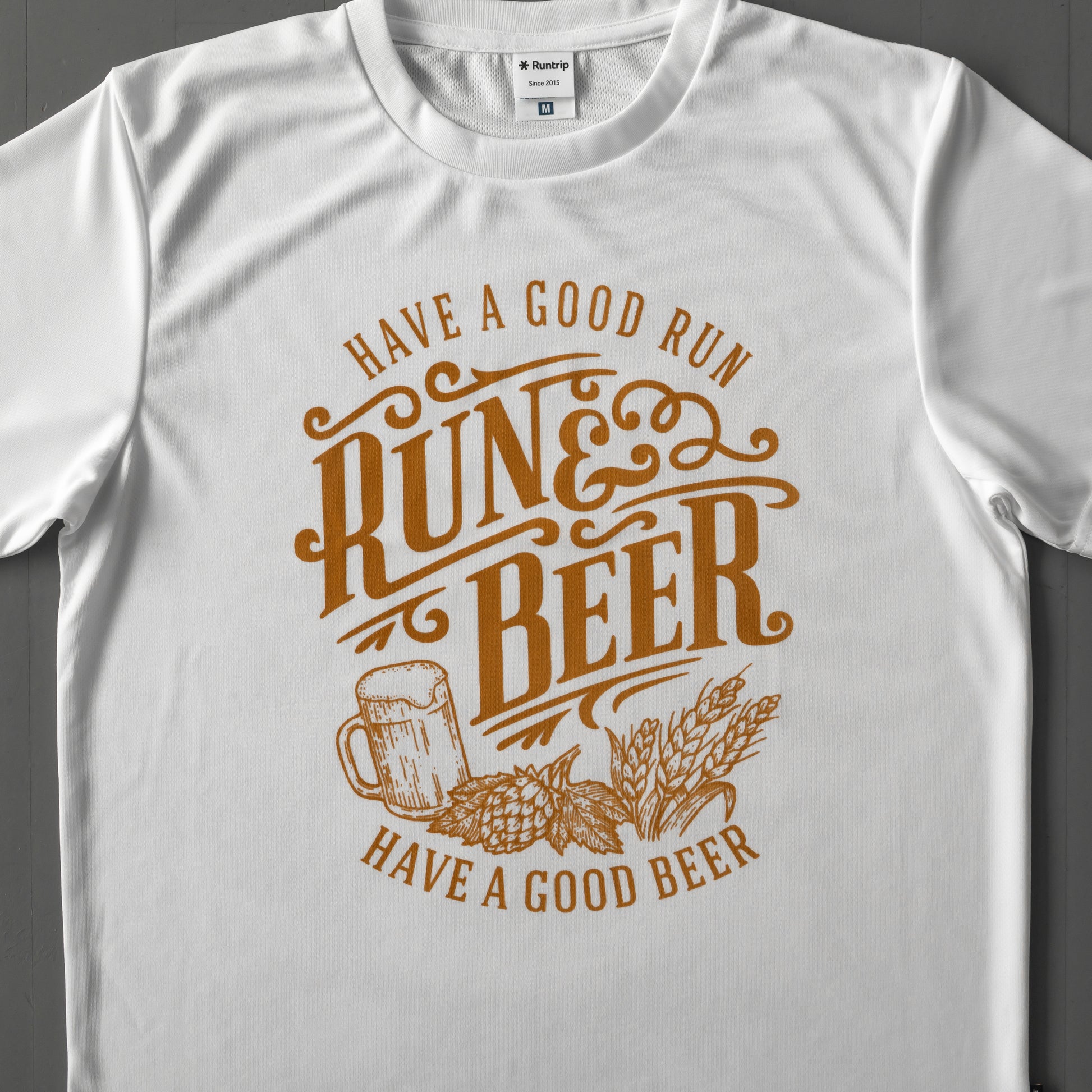 Runtrip Store開設依頼、愛され続けている「RUN & BEER」デザインに待望の「DRY(100%ポリエステルによる速乾・吸水スポーツタイプ)」バージョンが遂に登場。