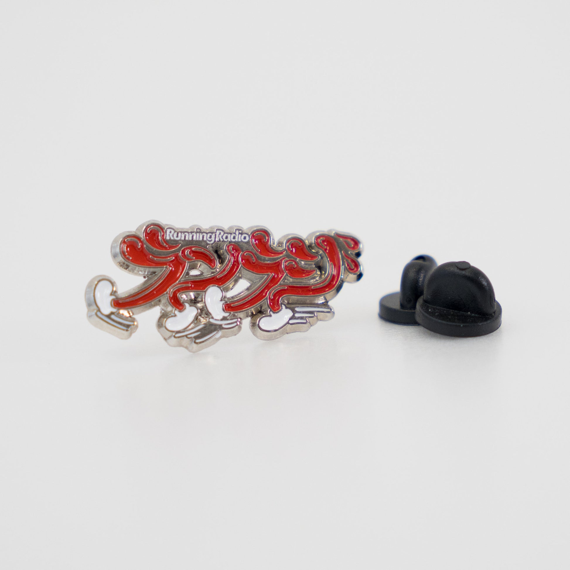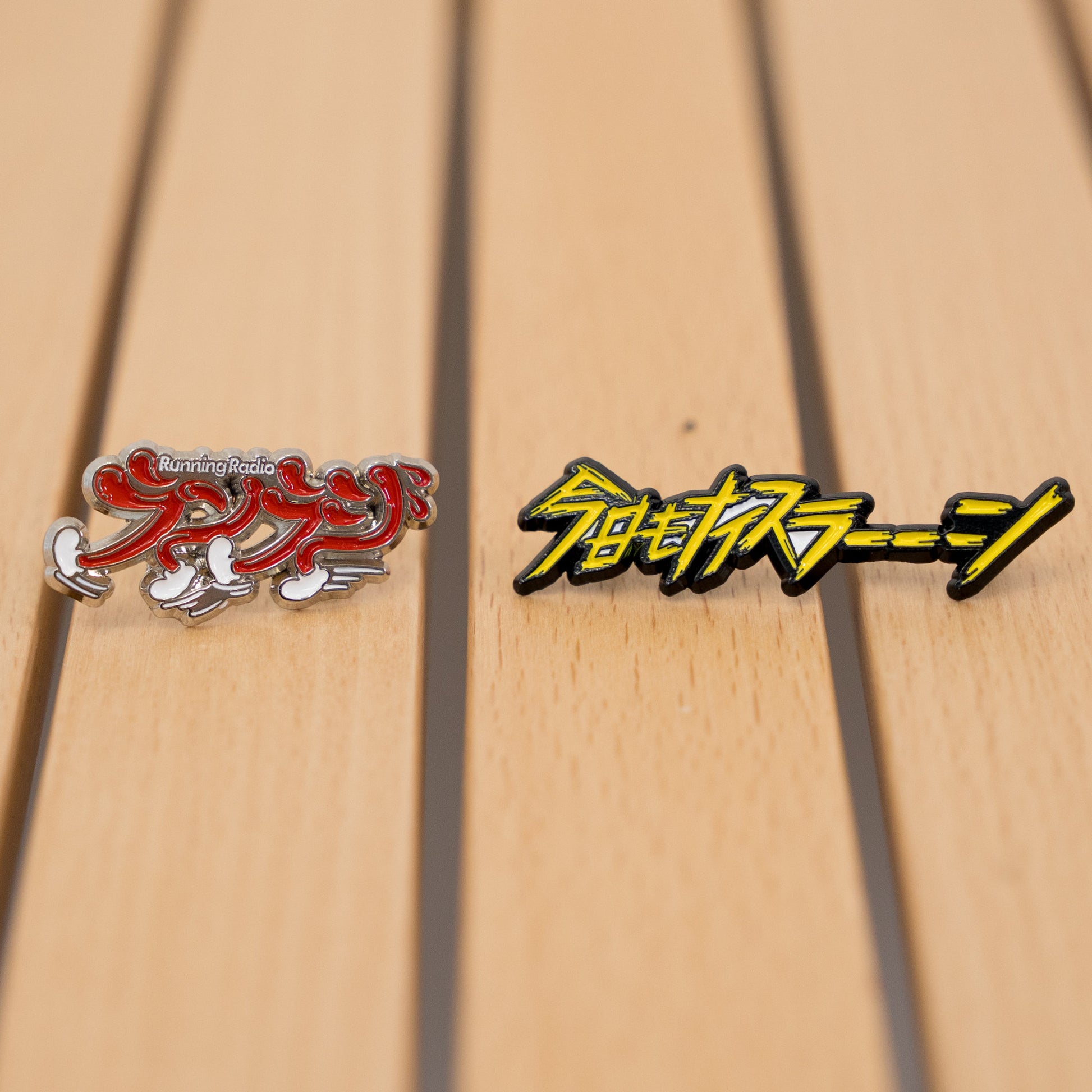 バッグやキャップ、ハット、ゼッケン、どこに付けてもアクセントになるミニマルなデザインの、ランラジオリジナルピンバッチ。