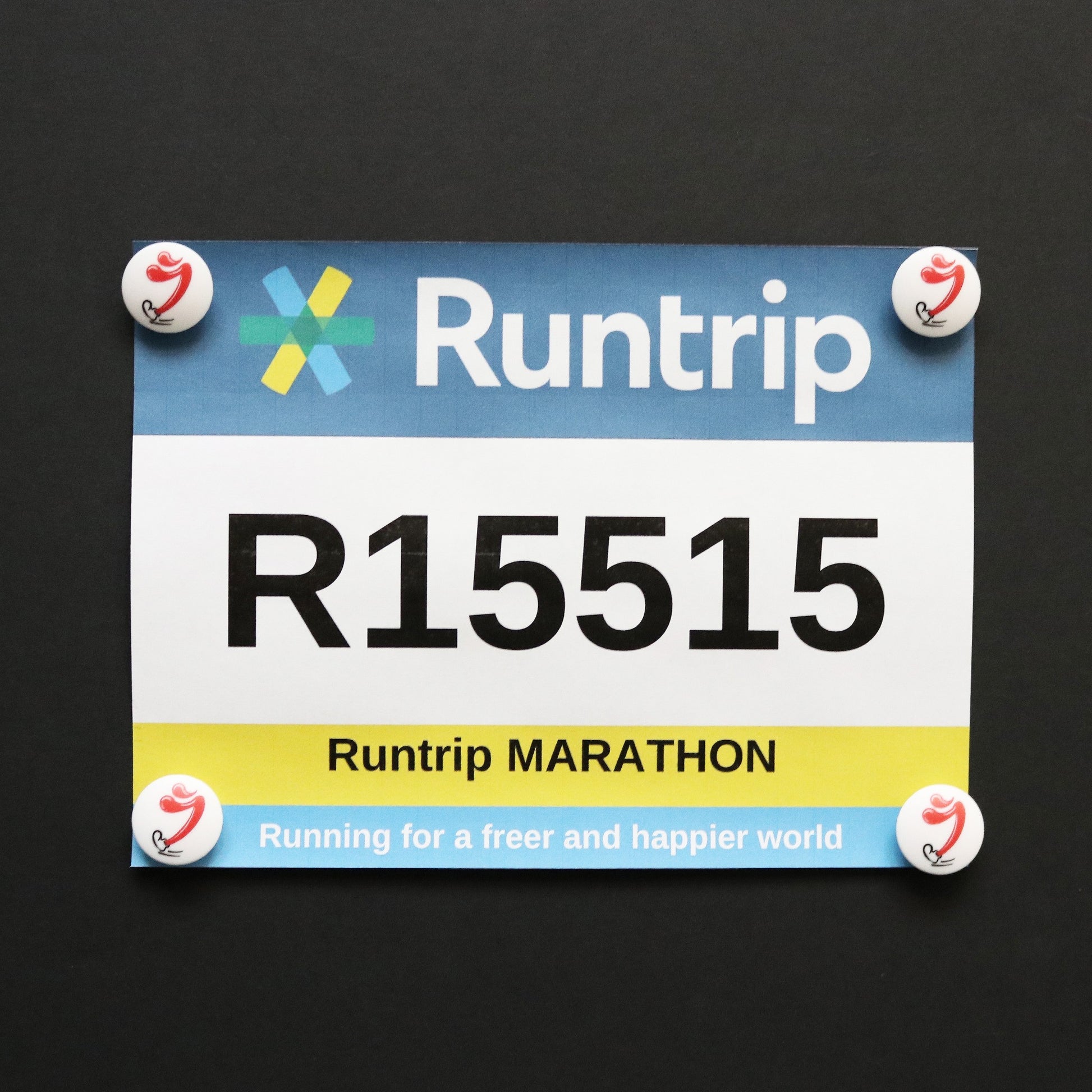 このゼッケンホルダーを胸に走っていただきたい。