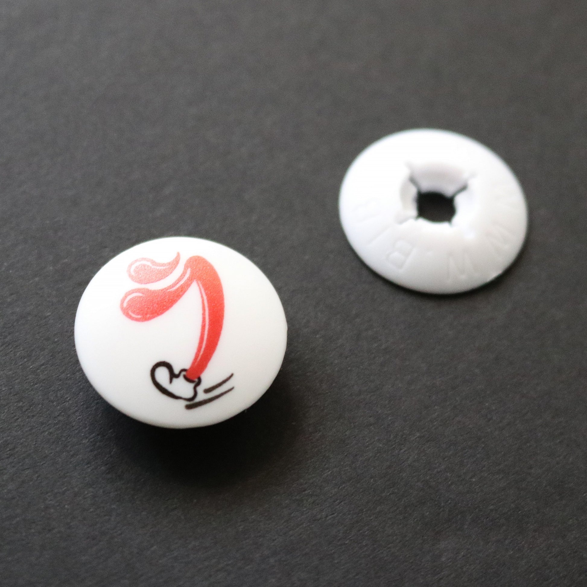 耐久性に優れたABS樹脂製のトップパーツに、非常に強固なUVプリントによってデザインをプリントしているため、ゼッケン留めは繰り返し使用することが出来ます。