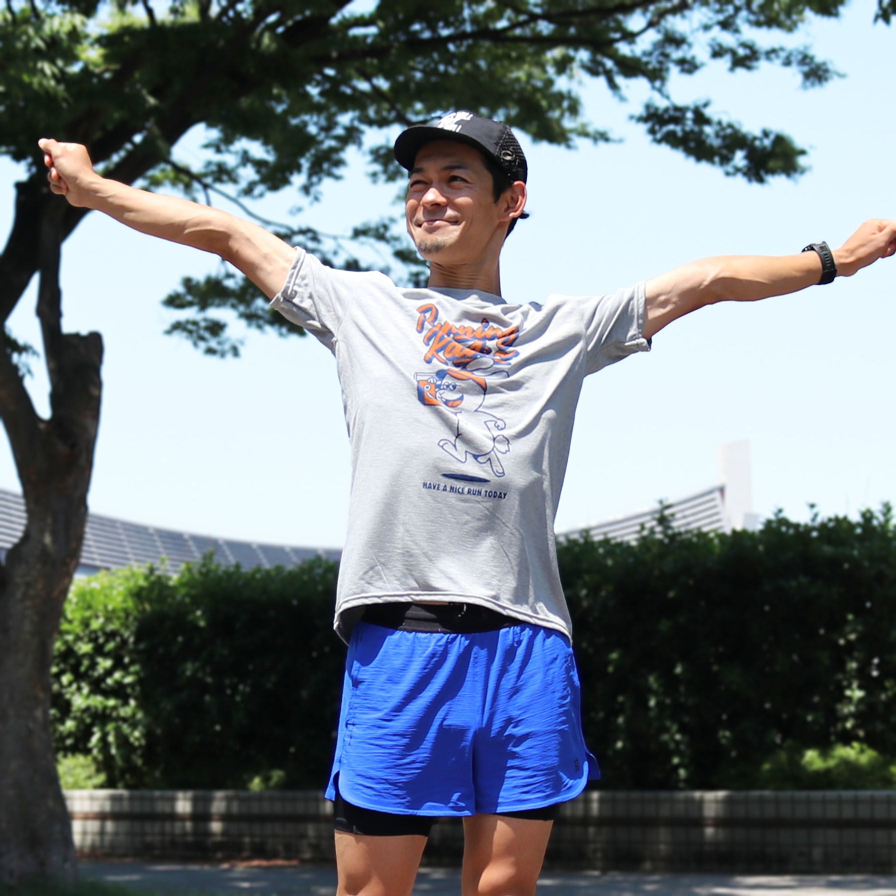 特にランニング時、背面の腰あたりにドリンクや携行品など収納するランナーが多いですが、その盛り上がりを長めの裾が見事に隠してくれます。逆に、前面に収納した場合は背面よりもわずかに短い裾が取り出しをより楽にしてくれます。ランナーによる、ランナーのためのTシャツです。