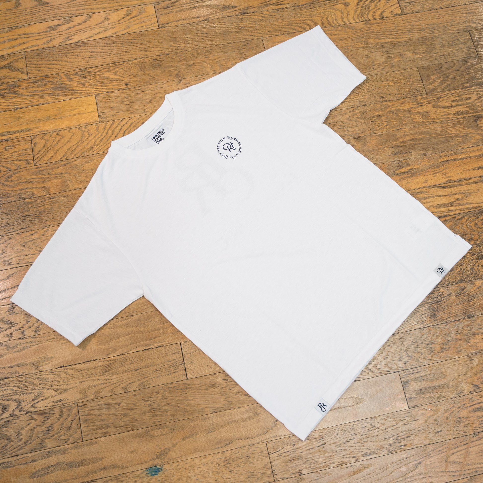 PROGRESS RUNNING CLUB × Runtrip コラボ別注、2025年秋冬の新作Tシャツ「 "PRC BADGE LOGO" Rt Logo Tee」