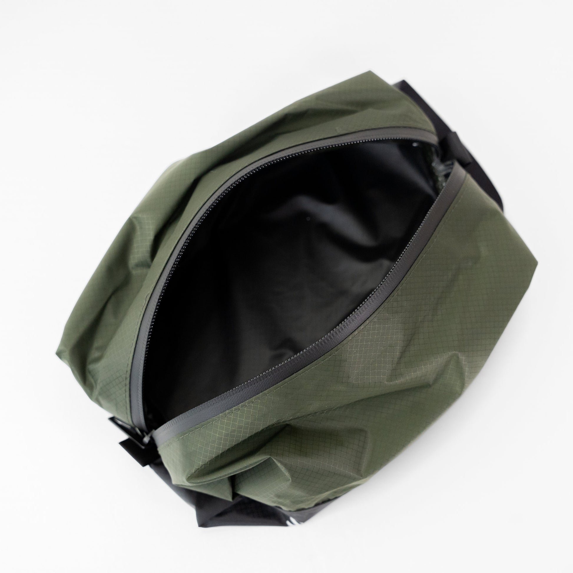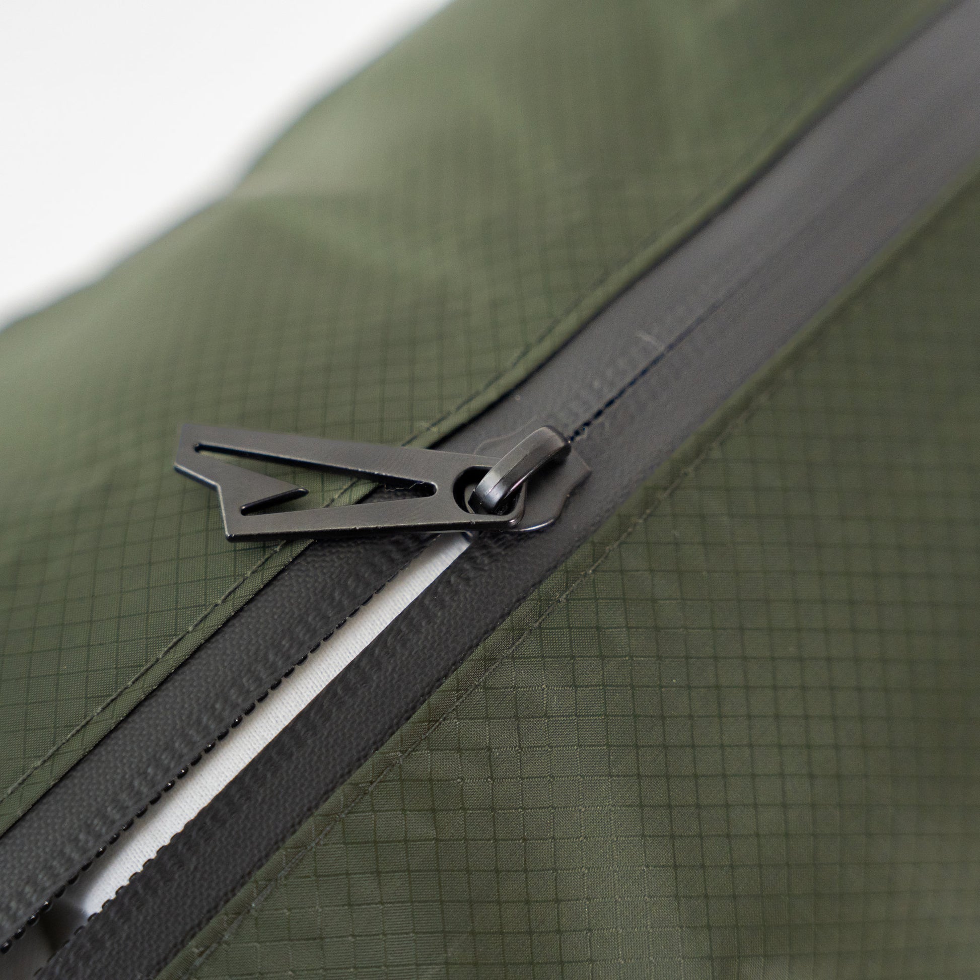 機能はそのままに、強はっ水加工、防水シームテープを施しています。開口部にはマットな止水ファスナーを使用。引手も開閉しやすいようブーンデザインに改良。開口部が大きく収納しやすくなっています。