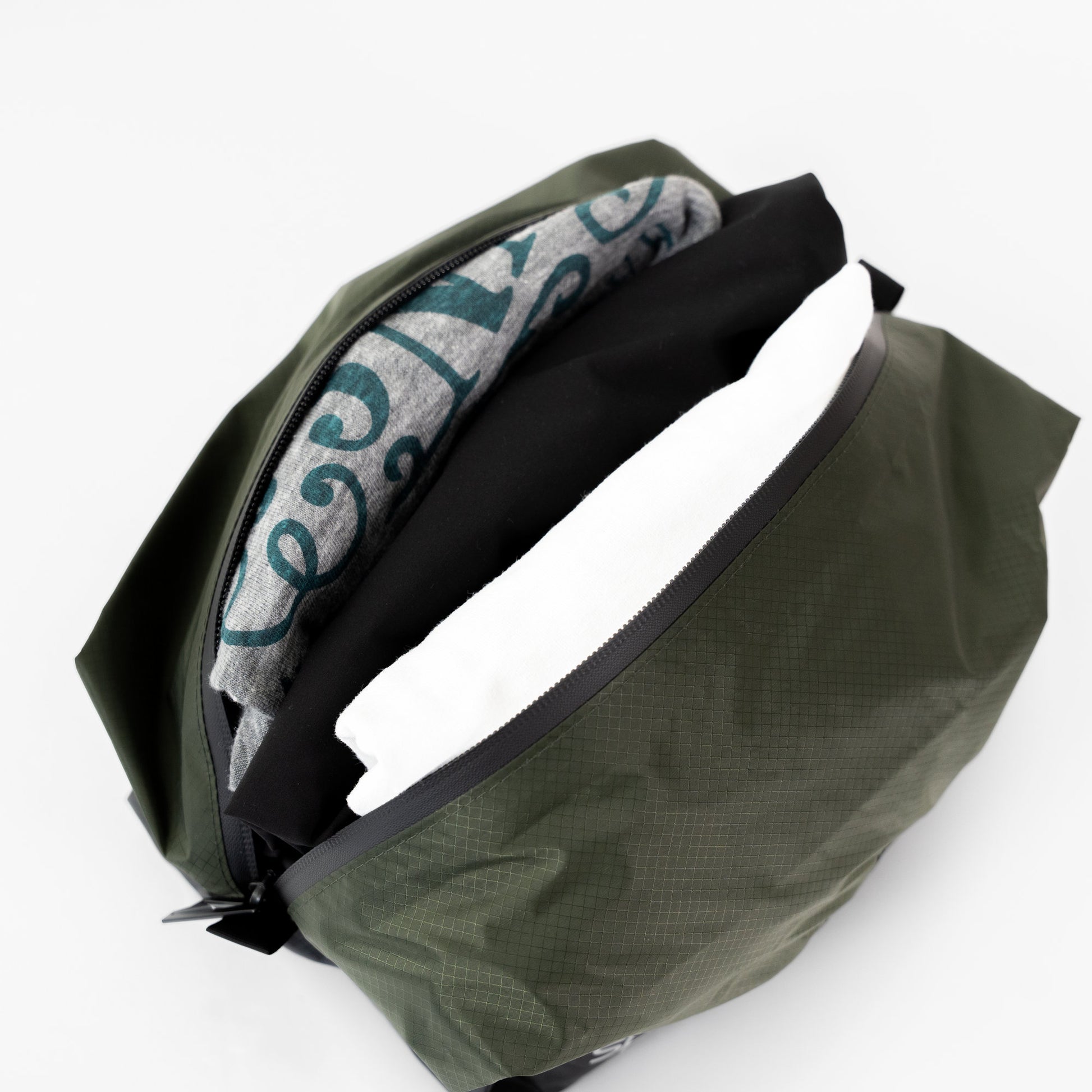 ウォータープルーフなので濡れたものの収納はもちろん、旅に出るときの衣類や小物たちの仕分けにも、雨の日の濡れた雨具入れなどのデイリーユースにも。