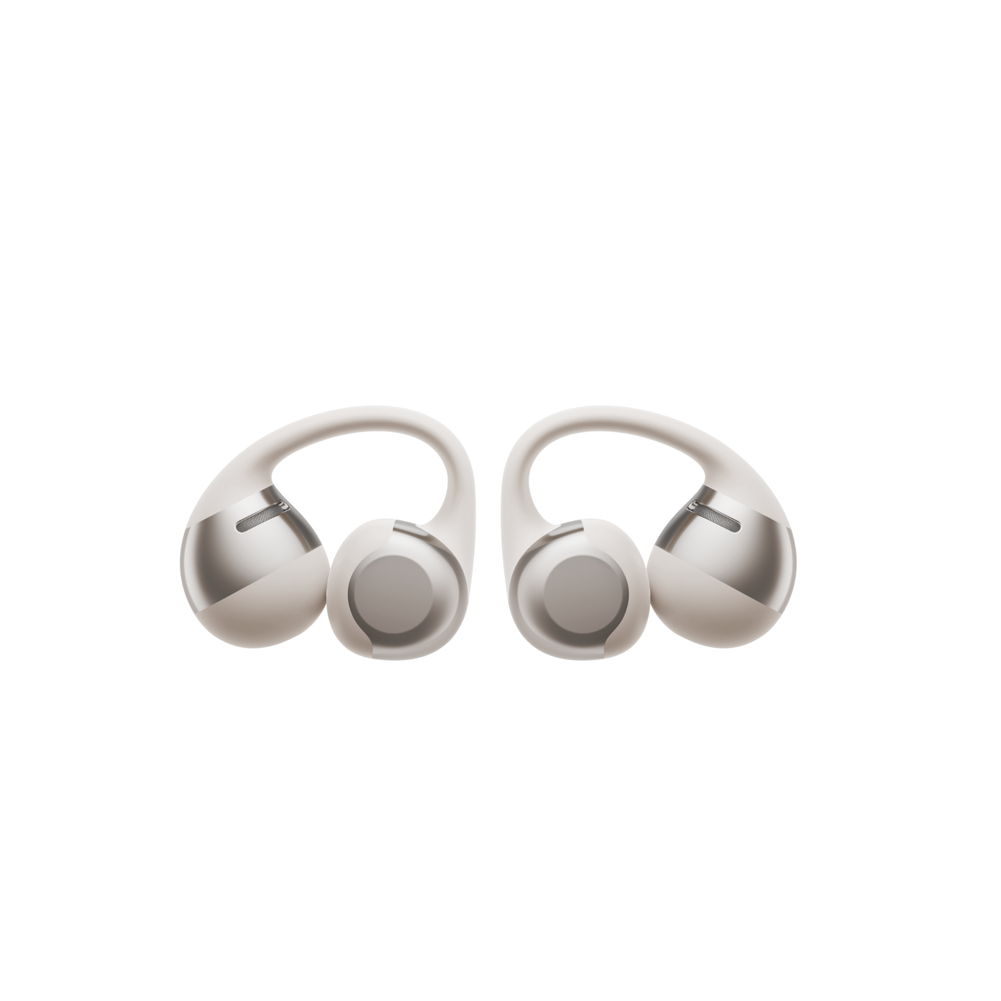 「OpenDots ONE」は、Shokzの特徴であるオープンイヤーデザインとイヤーカフ式イヤホンを組み合わせた、大胆で未来的なデザイン。