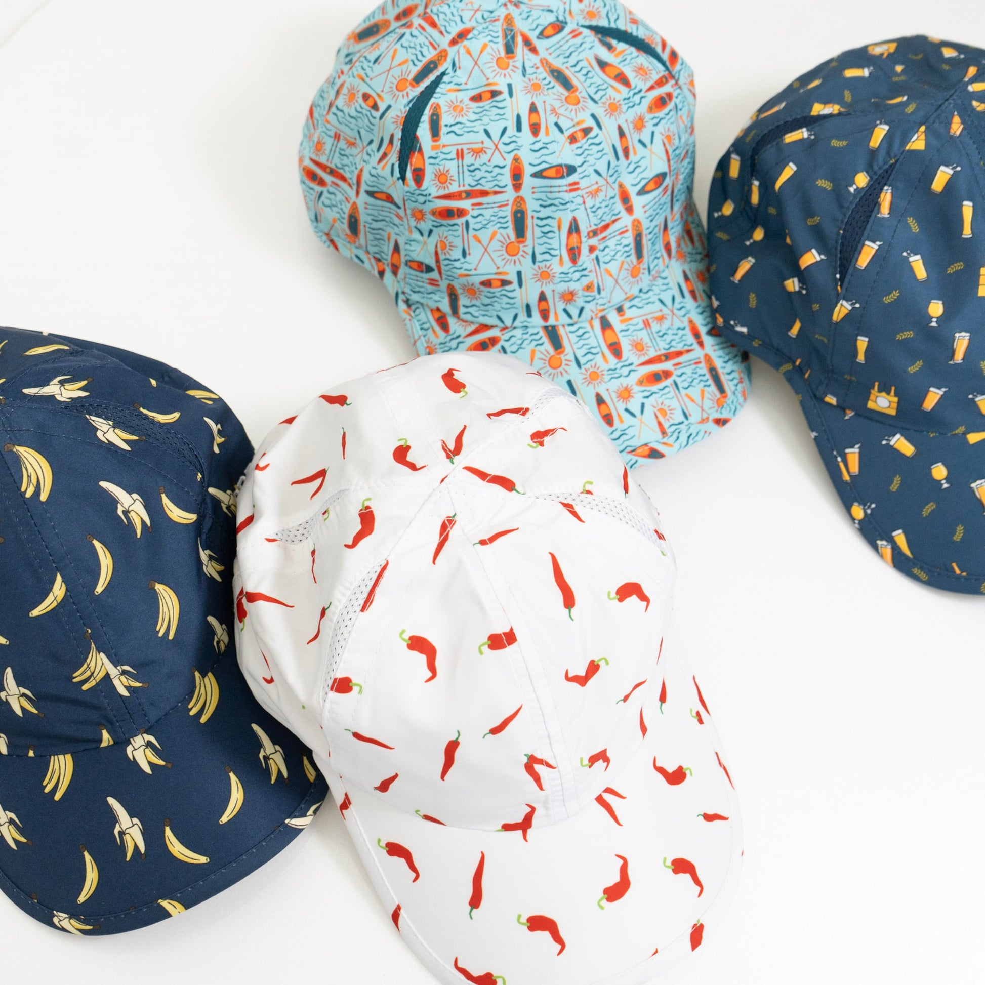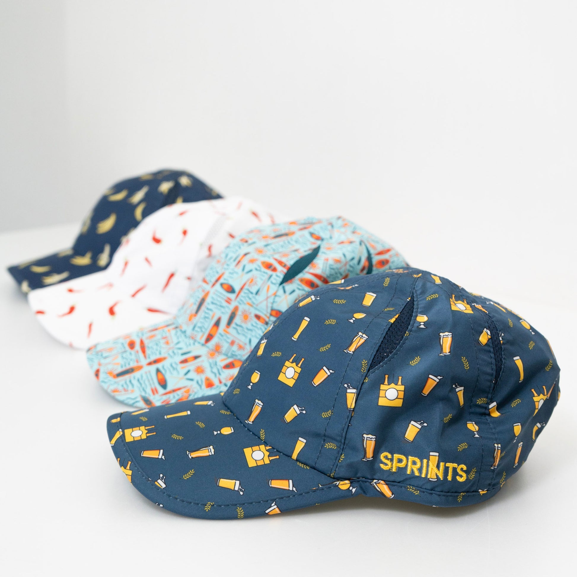 高機能でありながらカラフルで、ユーモアのある様々なモチーフが散りばめられた、遊び心のあるデザインが楽しいランニングキャップ。
