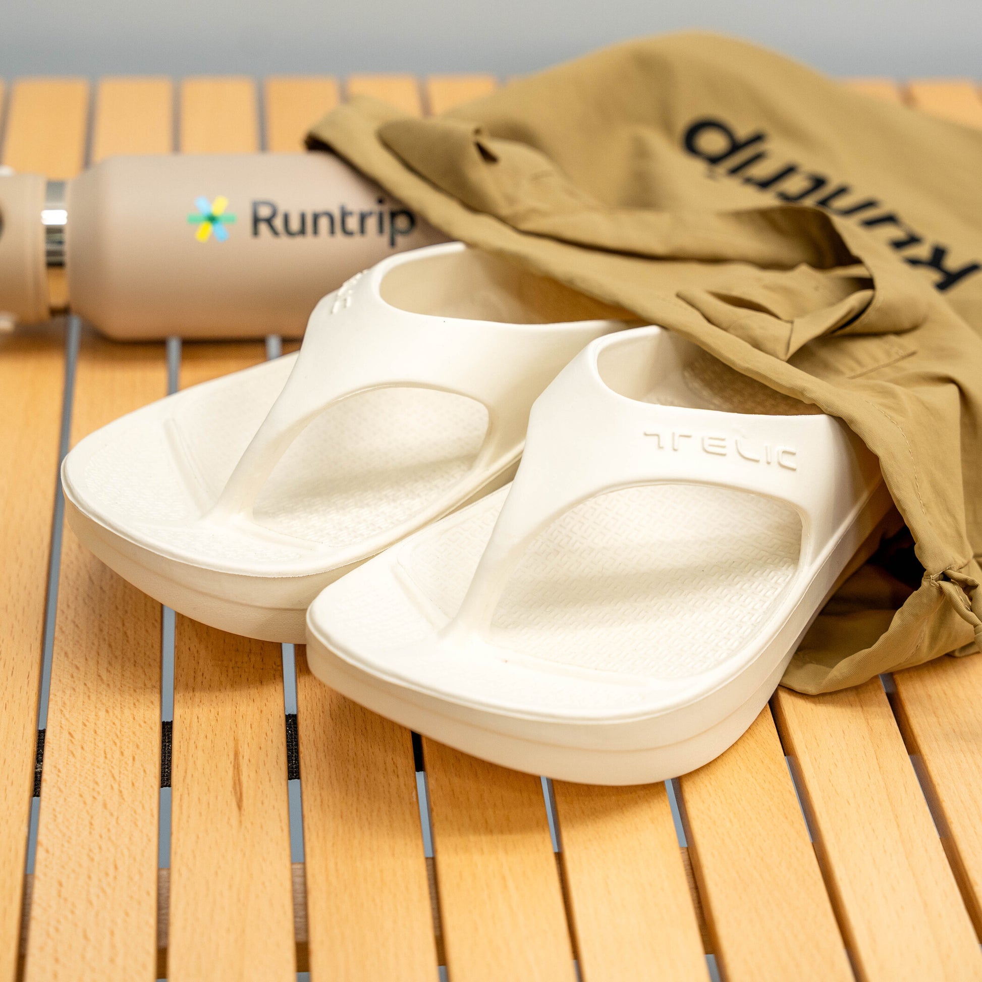 TELICのリカバリーサンダルは、独自開発したオリジナル素材を採用。足の疲労を軽減するクッション性が大きな特徴で、レース前後や長時間の移動などのシーンでの利用がおすすめです。