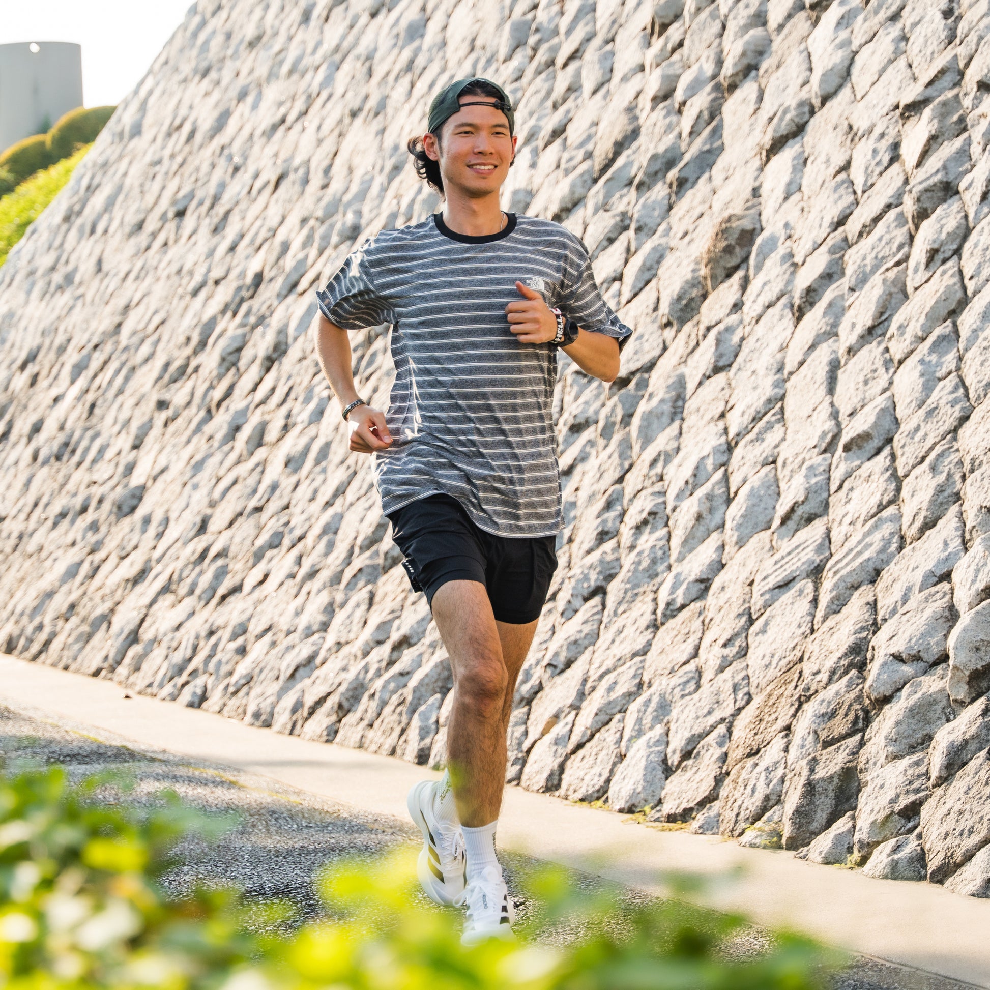 さらりとした清涼感と通気性を備えた、ほどよい厚みのランニングトップス。