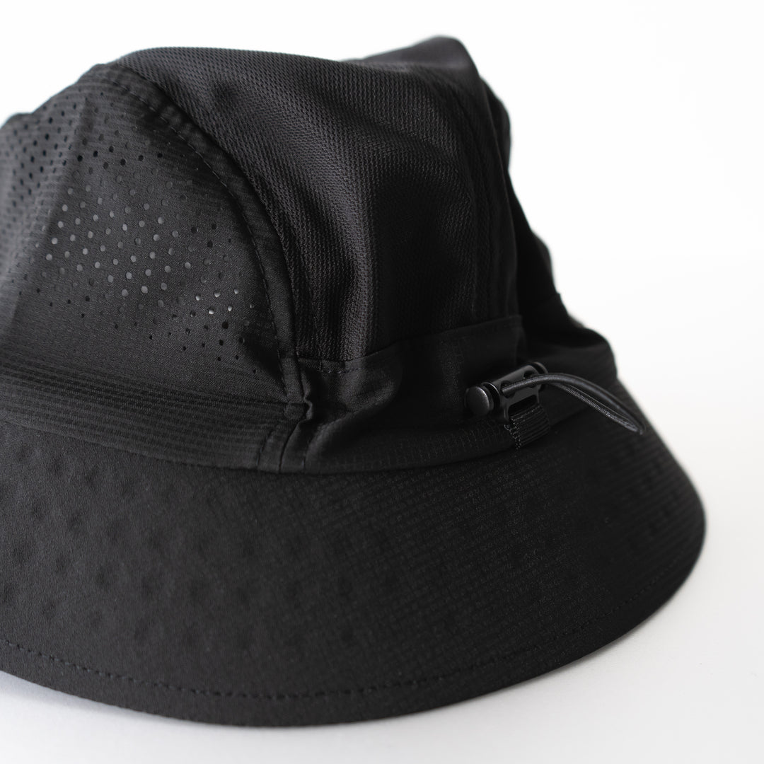 長距離を走るために作られたユニセックスのハット「FEATHER BUCKET」は、フェザー キャップと同様に、通気性を高めるための新しい生地が使用されています。