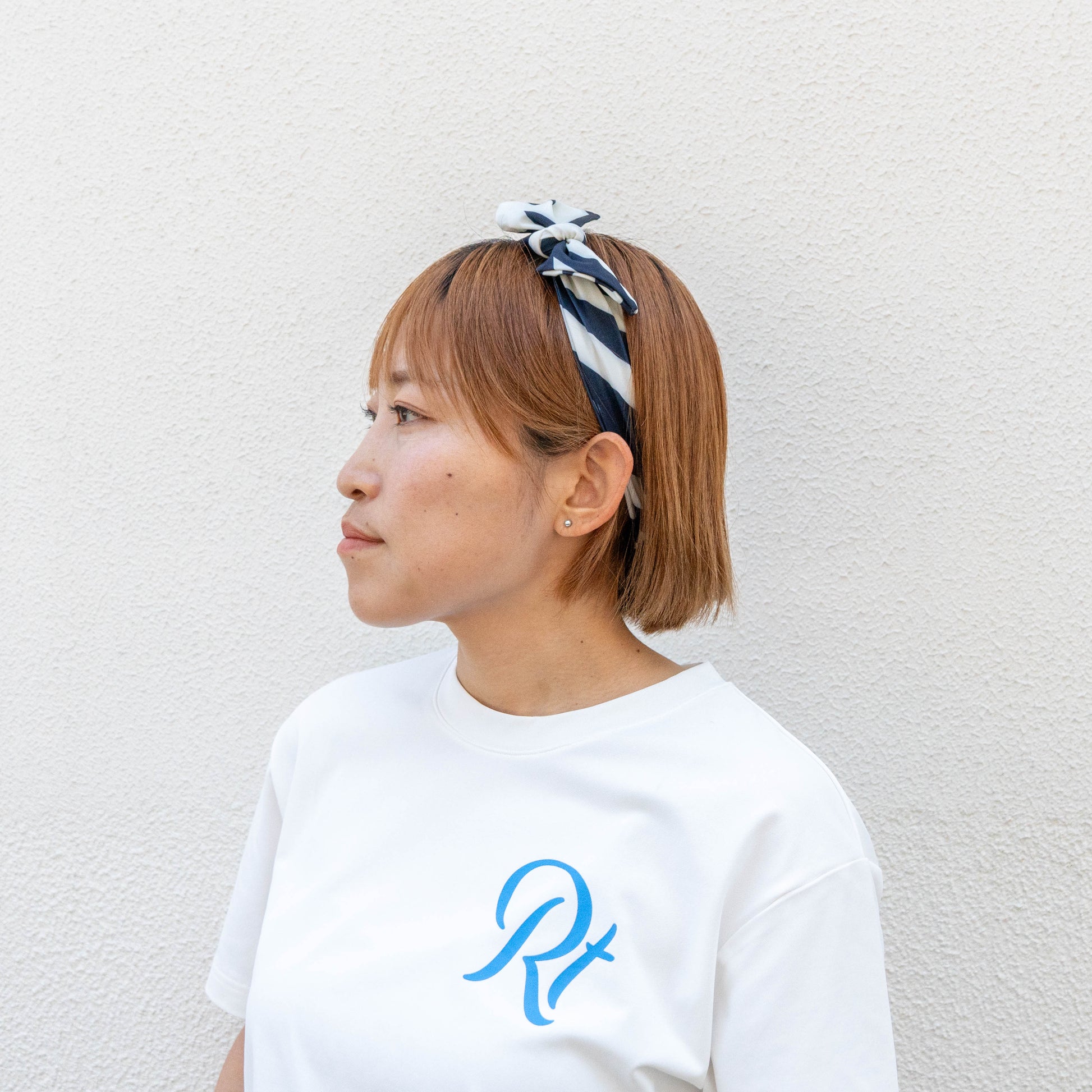 輪になったバンドタイプではなく、両端を結ぶタイプなので、頭のサイズや髪型に合わせて調整が可能。