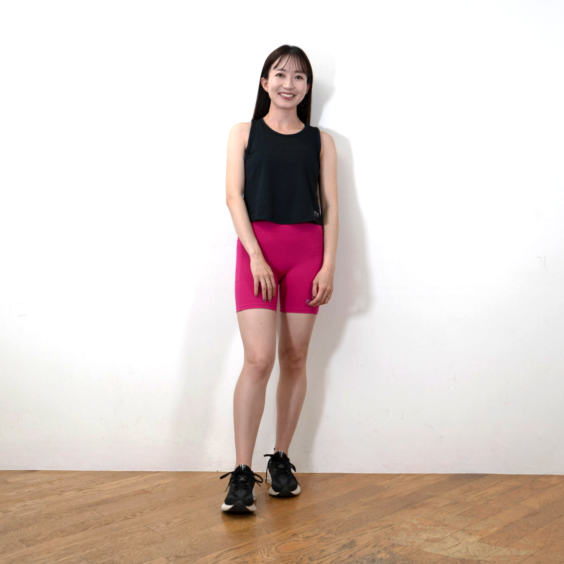 太ももの真ん中くらいの3.5分丈。脚の可動域が広くて動きやすく ランニングに最適です。